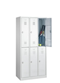 Große Auswahl an Schließfach Systemen in Metall, Holzwerkstoff oder als Nassraumausführung in HPL. Je nach Einsatzbereich der Schließfächer, erhalten Sie zwei bis elf Fächer übereinander. Der Fächerschrank eignet sich zur Aufbewahrung von Taschen, Wertsachen und bei Großraumfächer für Motorradhelme. Bei begrenzten Platzverhältnissen und zur Aufbewahrung von Geldbörsen, Schlüssel und Handys, empfehlen sich Kleingefachschränke mit geringer Tiefe.